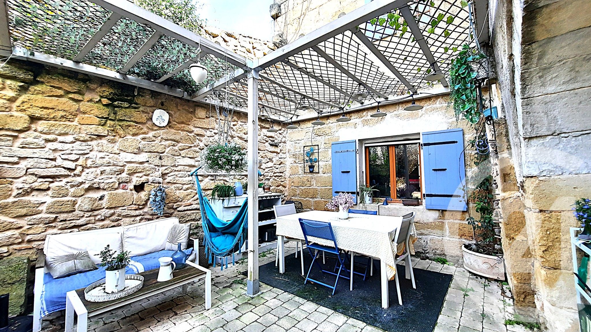 Elle est composée au rez de chaussée, d'un séjour lumineux donnant sur une terrasse, d'une grande cuisine équipée et aménagée, d'un toilette et d'une buanderie. A l'étage, quatre chambres et une salle de bain. Dans le prolongement de la terrasse, une cour sans aucun vis à vis avec une piscine hors sol, semi enterrée et chauffée. Le gros plus se trouve à l'extrémité de la cours, une dépendance sous forme de porche qui peut servir de stationnement avec son accès direct dans la rue, de remise ou d'un futur logement supplémentaire.